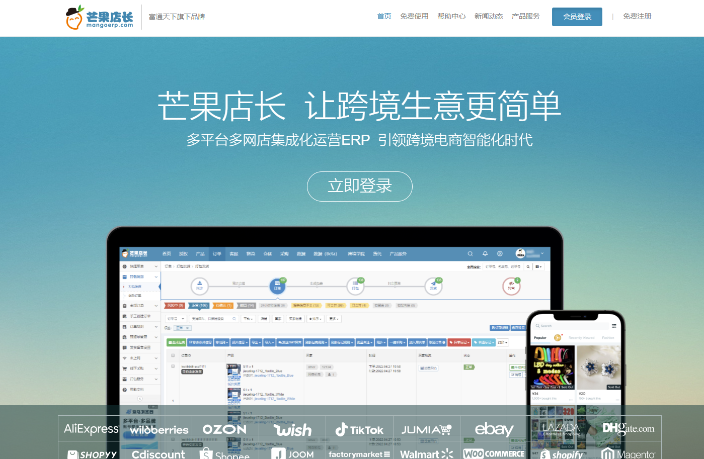芒果店长官网是深度求索公司为全球跨境电商卖家打造的一站式ERP解决方案的门户。它不仅是了解芒果店长最新功能、版本更新和官方资讯的首选平台,更是卖家注册、登录系统,开启高效旅程的起点。在这里,卖家可以全面洞悉产品如何解决多平台管理、订单处理、物流发货、仓储管理等核心痛点。