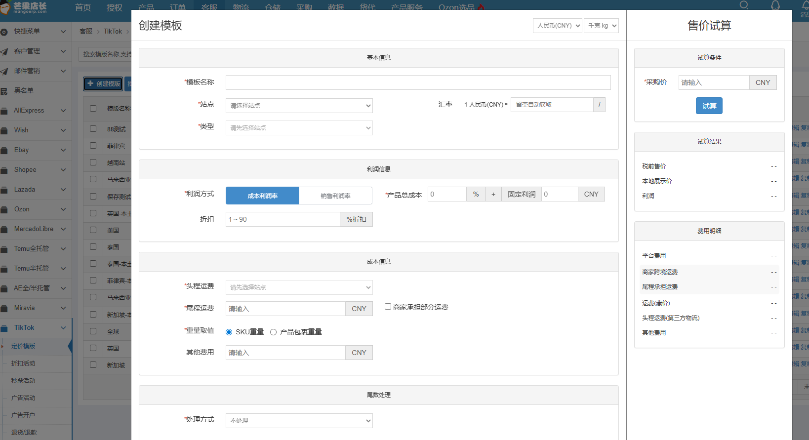 芒果店长新增定价模板