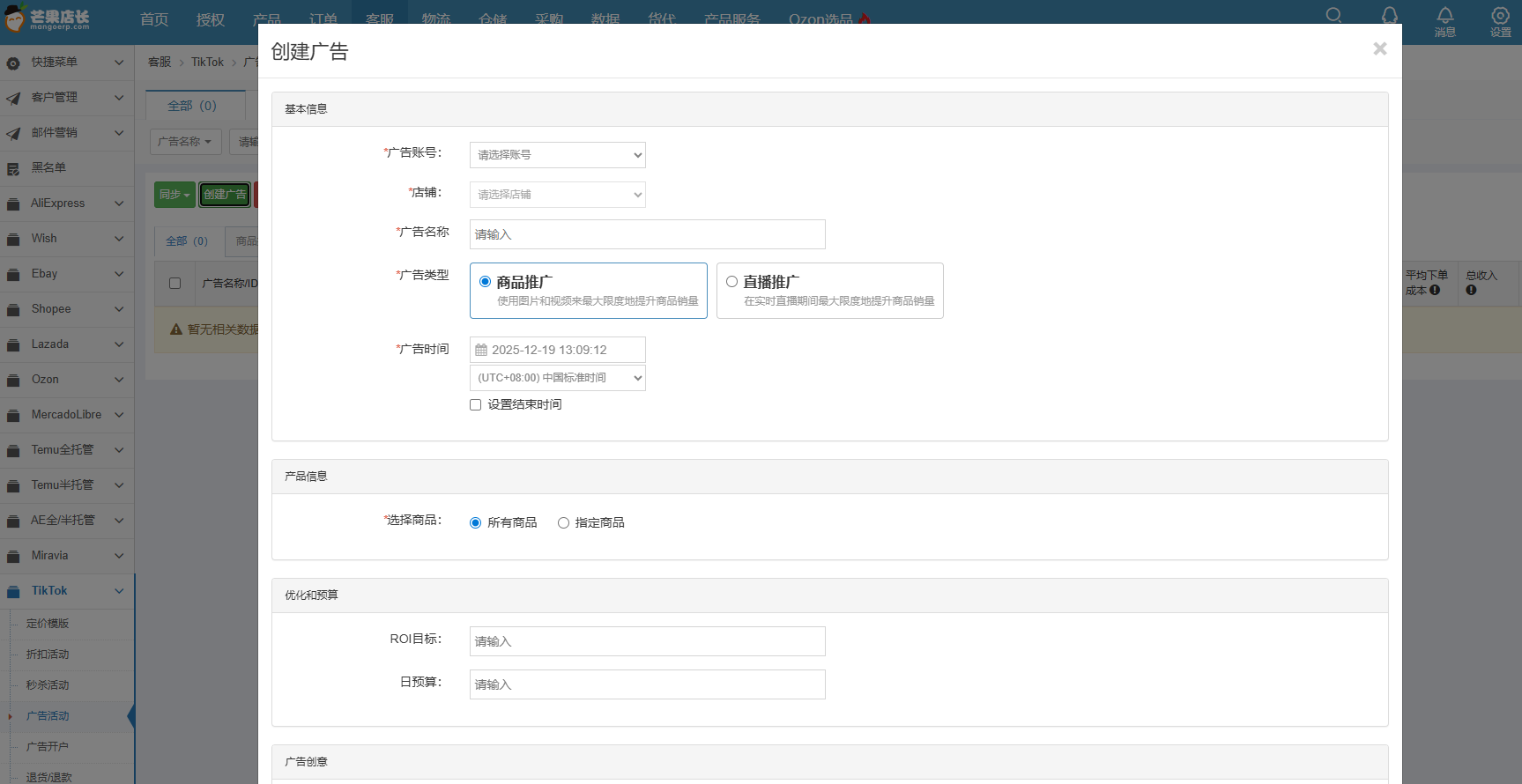 芒果店长新增TK广告功能