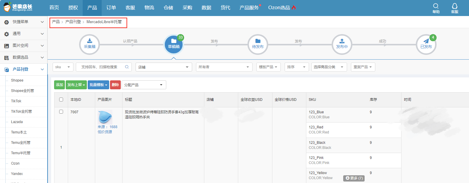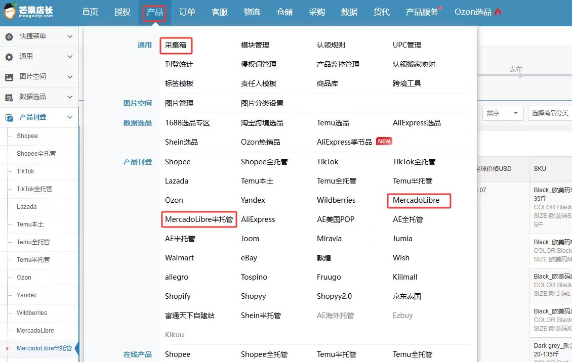 针对美客多半托管,芒果店长全新升级,新增产品刊登功能,从上品到发货全流程帮你高效抓红利!